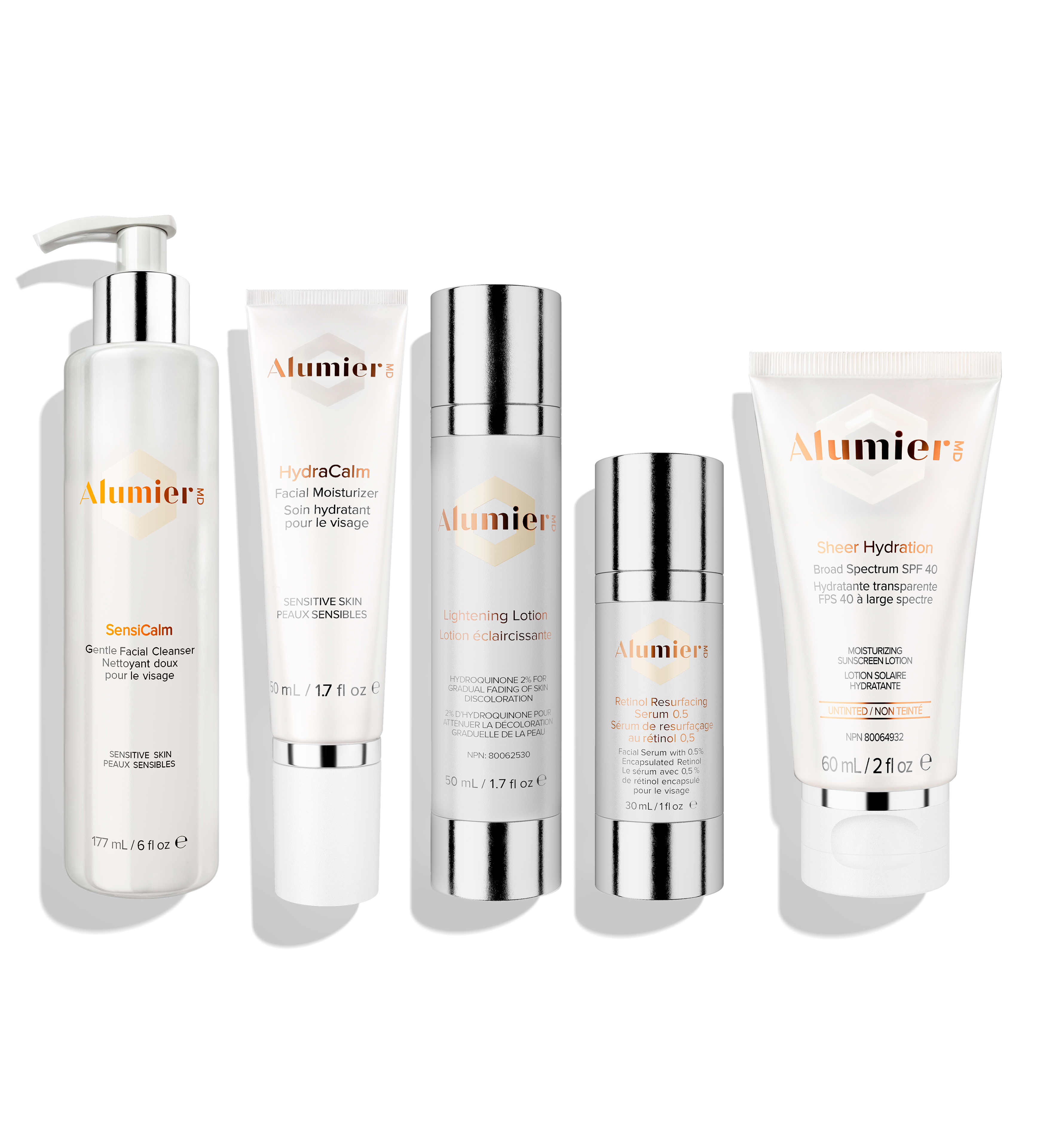 The AlumierMD™ Brightening Collection for Hyperpigmentation is a targeted regimen that fades dark spots, evens skin tone, and replenishes hydration, all while catering to the unique needs of dry and sensitive skin. With consistent use, this collection helps reveal a visibly brighter and more radiant complexion.