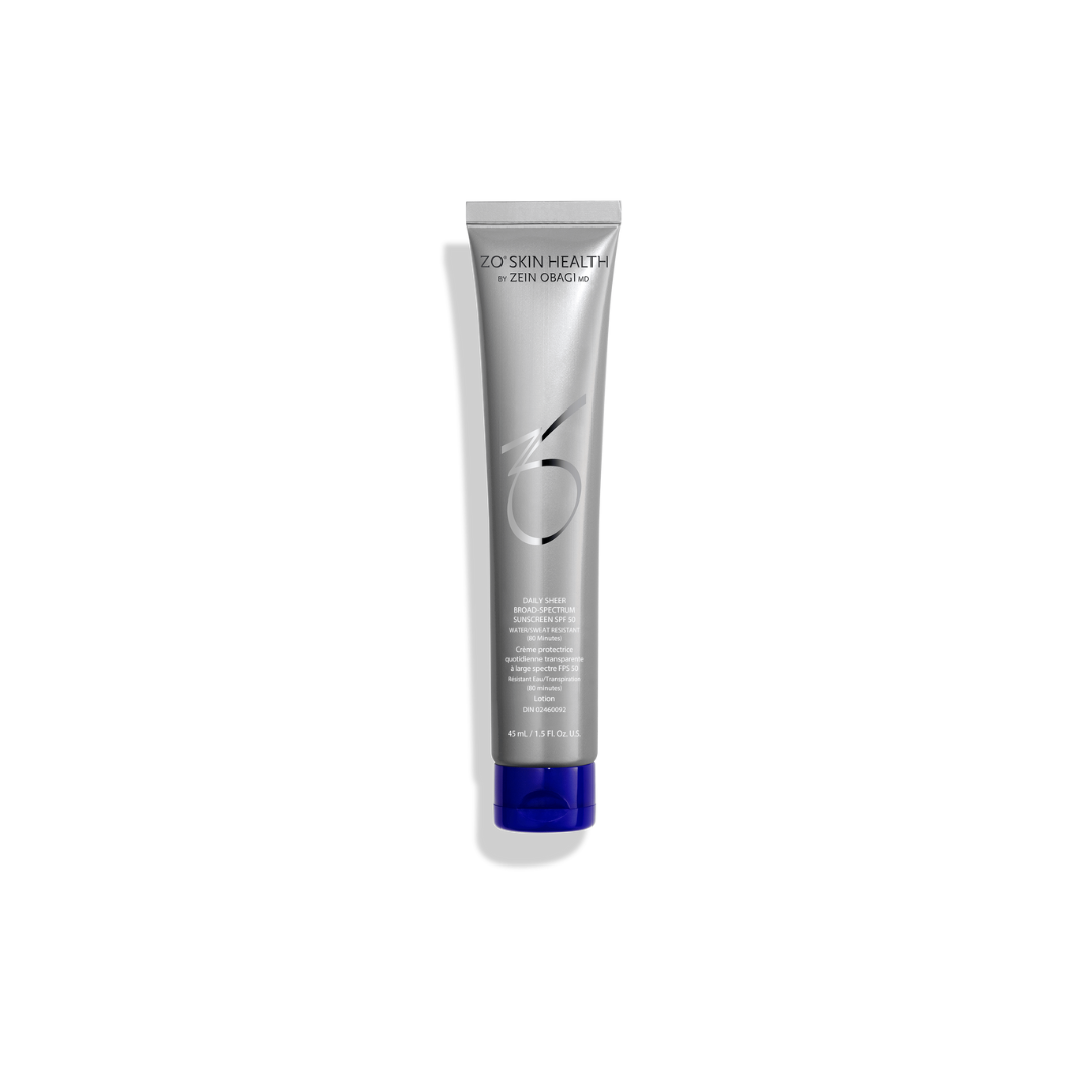 This lightweight, non-greasy ZO® Skin Health Daily Sheer Broad-Spectrum SPF 50 sunscreen offers superior protection against UVA/UVB rays, delivering a sheer, matte finish. Infused with advanced hydration and antioxidant protection, it keeps skin healthy, radiant, and shielded from environmental aggressors.