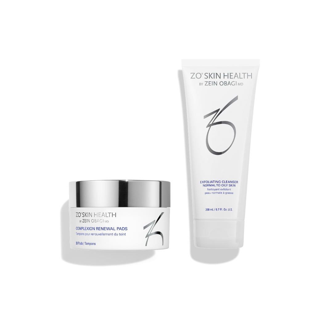 Refine, refresh, and visibly improve skin clarity with the ZO® Exfoliating Cleanser + Complexion Renewal Pads—a powerful daily duo designed to remove impurities, control oil, and promote a smoother, more balanced complexion. Ideal for normal to oily and breakout-prone skin, this synergistic pair prepares the skin for optimal absorption of treatment products.